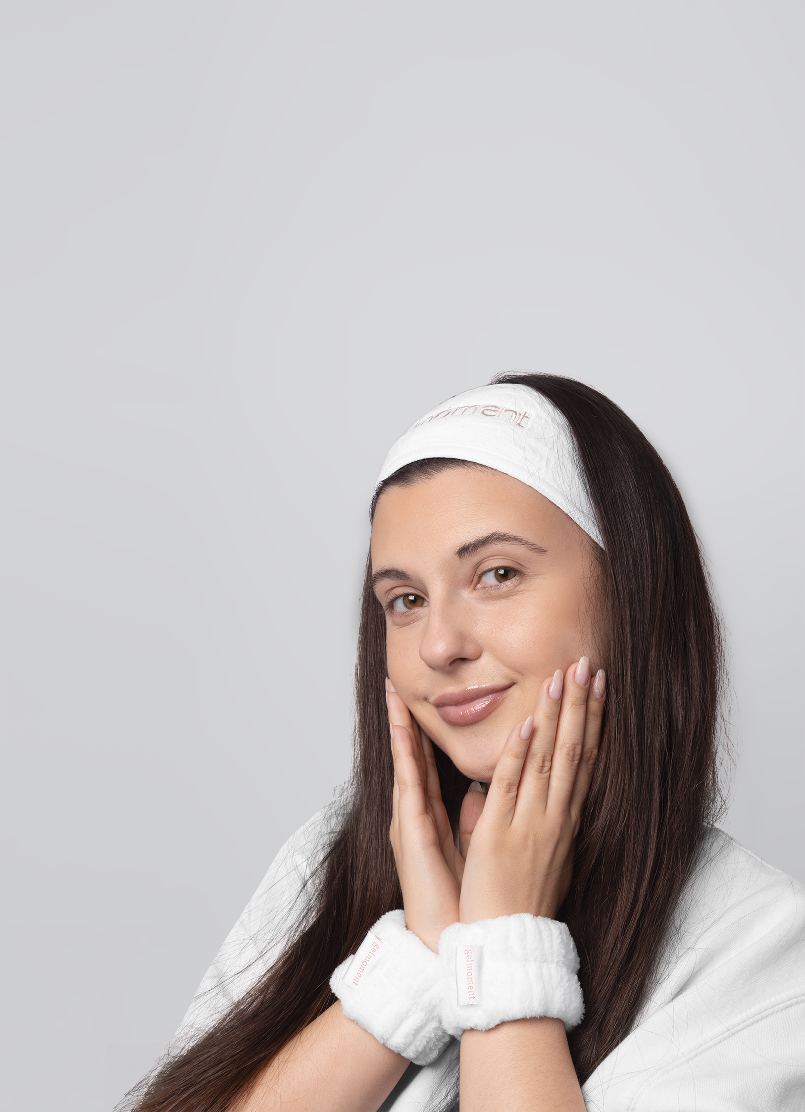 Gelmoment microfiber headbands are pure white. Embroidered with the gelmoment logo. Made with quality detailing and hems for optimal resistance to wear and tear.